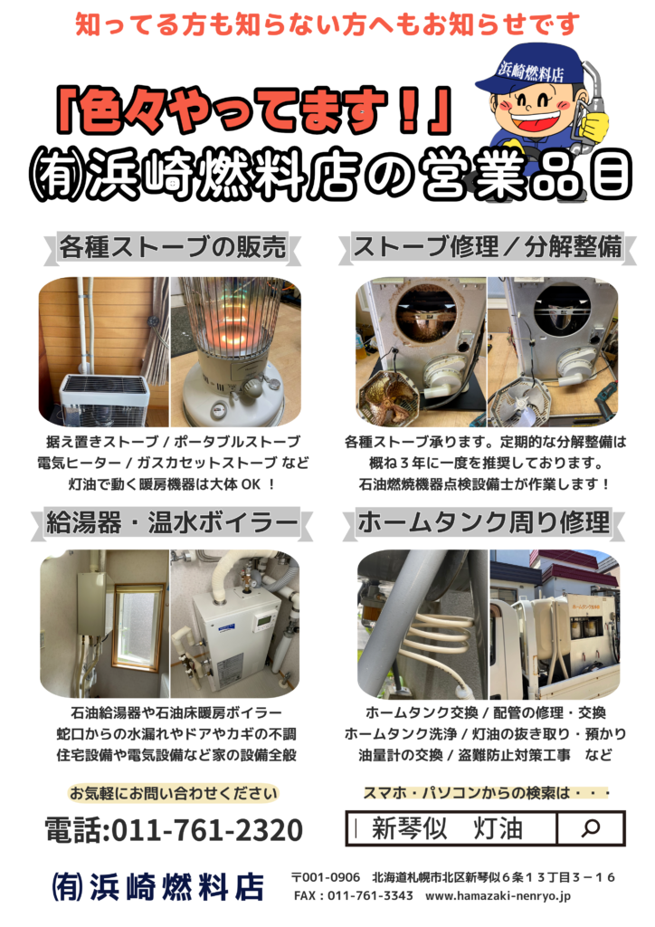 札幌市北区新琴似・屯田は浜崎燃料店にお任せ!
