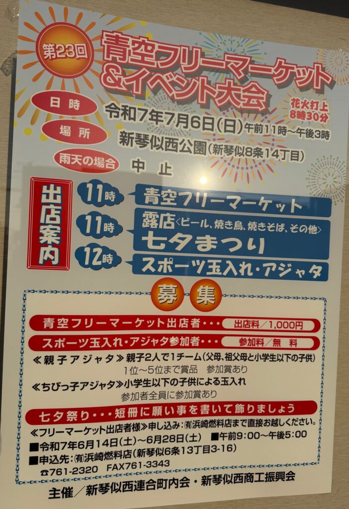 第23回 青空フリーマーケット&イベント大会2025 のお知らせです 2025年7月6日(日)に新琴似西公園(〒001-0908 北海道札幌市北区新琴似8条14丁目6)にてフリーマーケットを開催します。 新琴似西公園はこちら ⇒ https://maps.app.goo.gl... -